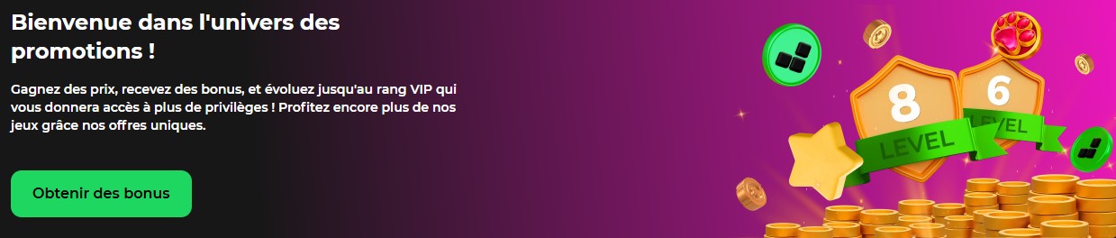 Le casino en ligne prend également soin de ses clients en proposant des bonus VIP pour la fidélité. Pour participer au club d’élite, il suffit de faire des dépôts et de jouer pour de l’argent. Cela vous aidera à atteindre le prochain niveau VIP, en recevant jusqu’à 20% de cashback, des promotions uniques, des tournois exclusifs, l’aide d’un manager personnel et d’autres privilèges de 18 niveaux de club VIP.